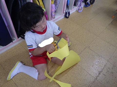 先日から各学年で作り進めていた、四ヶ町の七夕飾りが