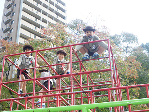 ジャングルジムのてっぺんまで行ったお友だちも。