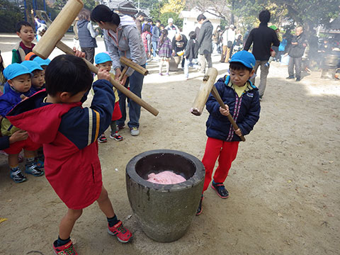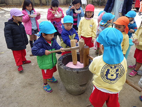 幼稚園でももちつきをしたばかりなので、体験したときも