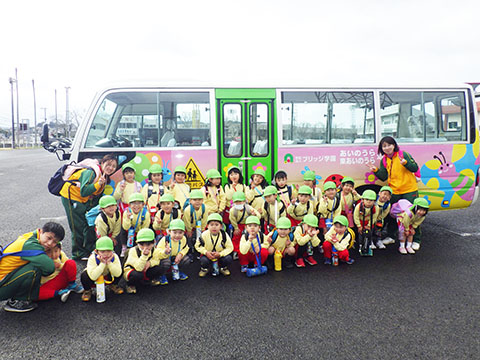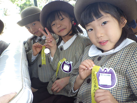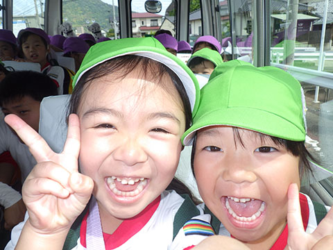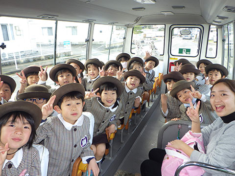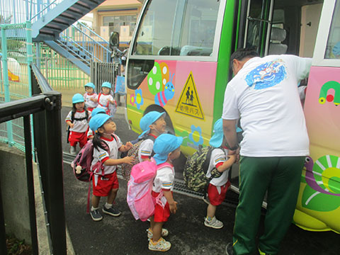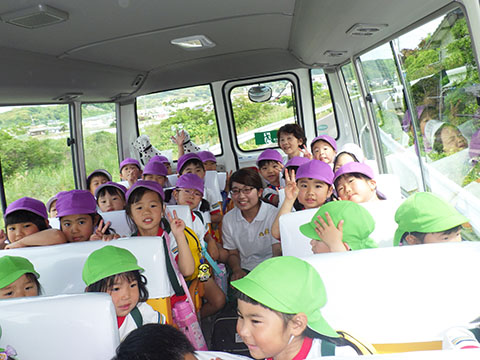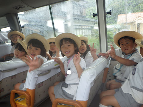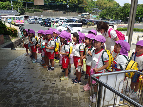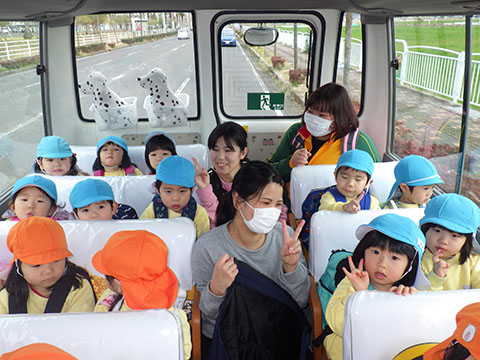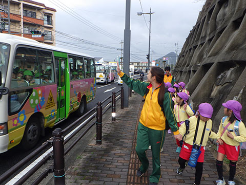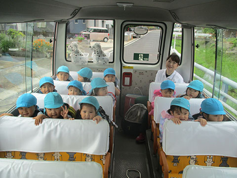 さんぽぐみさんは、園からパールシーまでバスで行きます。