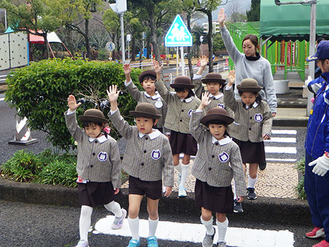 ほしぐみさん、ことりぐみさんは西消防署まで歩きます。