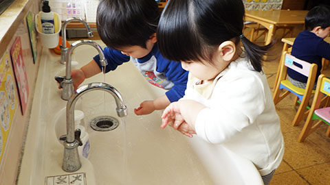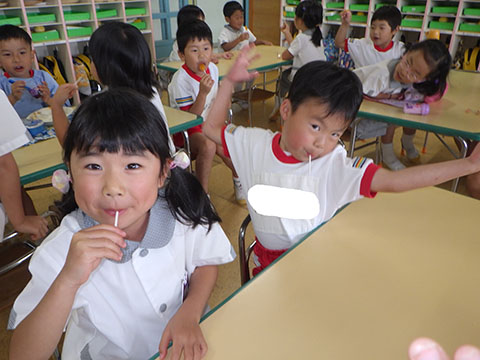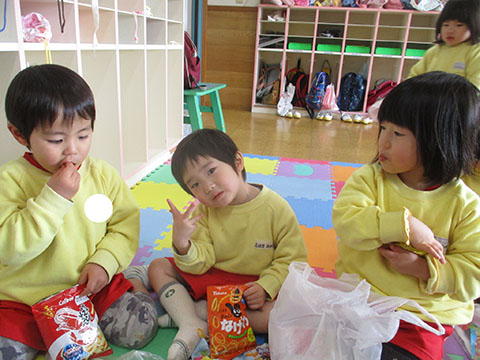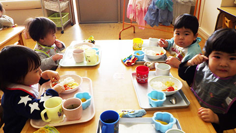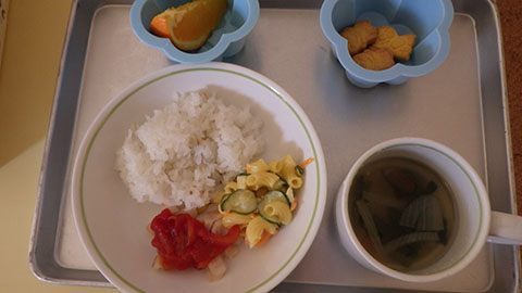 今日は4月から進級するさんぽぐみで給食を食べました。