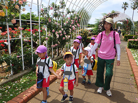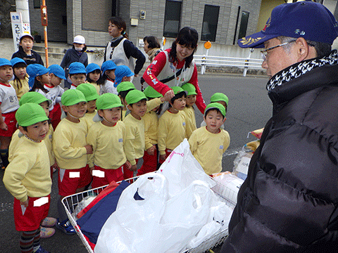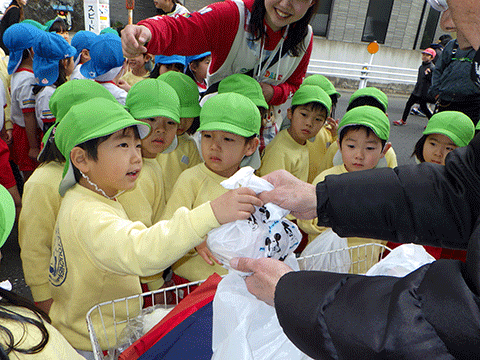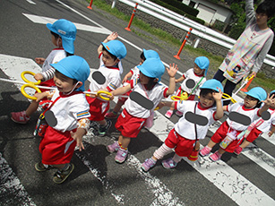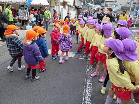 預かり保育の園児たちが昨日に続いて愛宕祭りへ