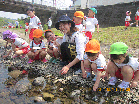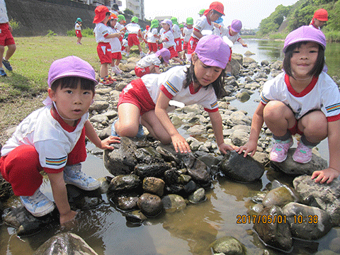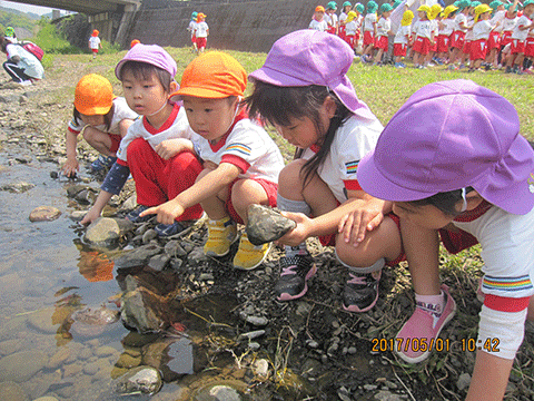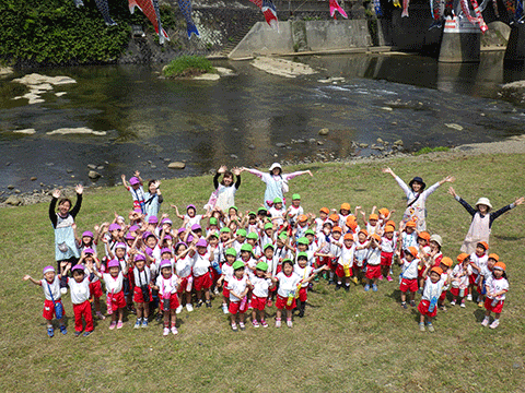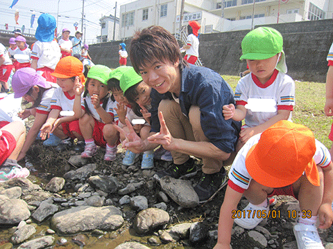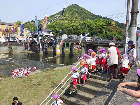 でも子どもたちはこいのぼりより川の方に興味があるようで・・・