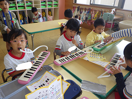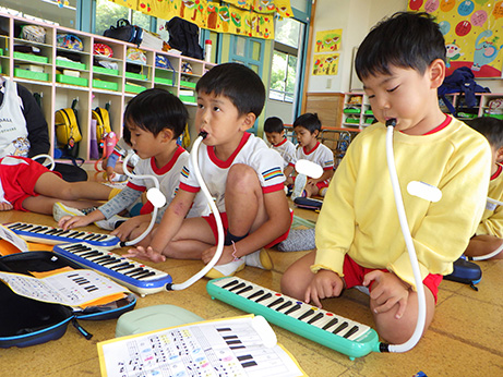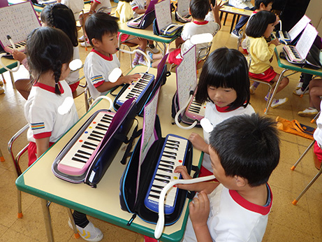 着替えを済ませると、鍵盤ハーモニカの練習。