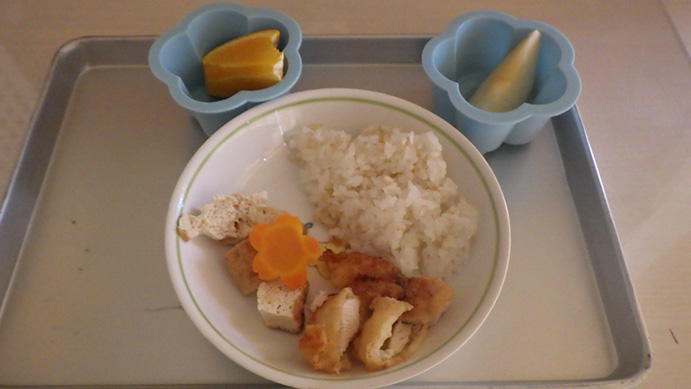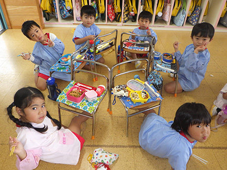 の挨拶と同時に、ごはんやおかずをどんどん口に運びます。