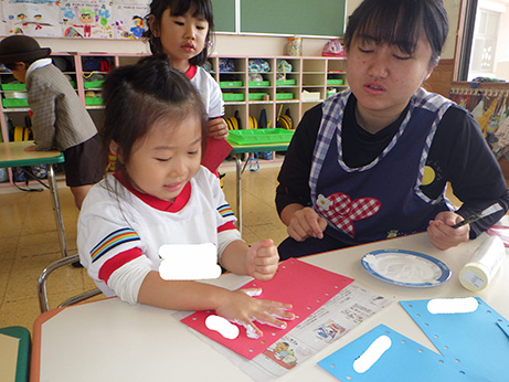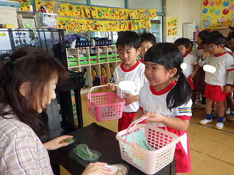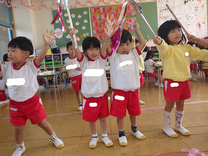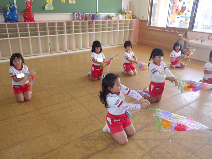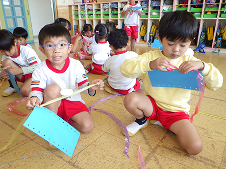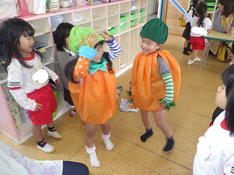 ことりぐみでは、おゆうぎ会の衣装合わせをしていました。