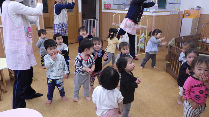 さんぽぐみさんも元気いっぱいにおゆうぎ会の練習を