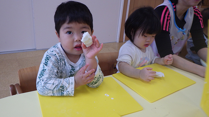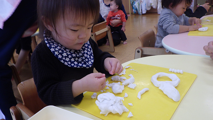 こねたりちぎったり、粘土の感触を楽しんでいましたよ。