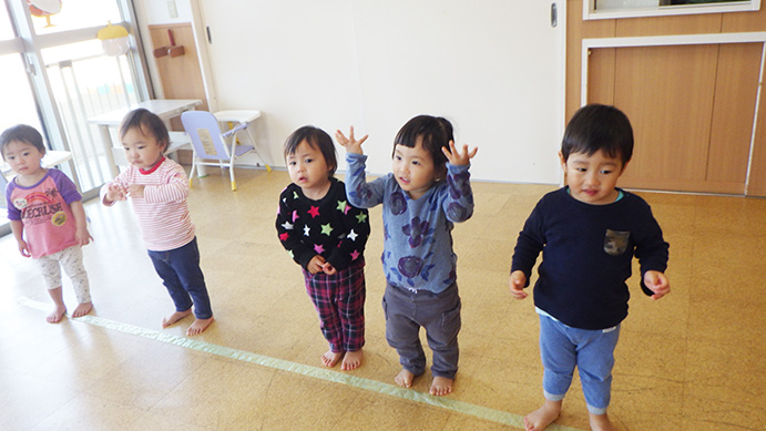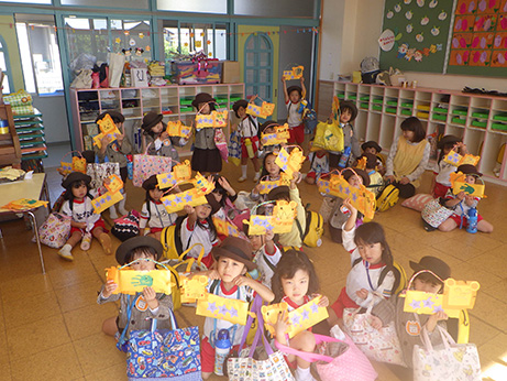 ひかりぐみさんはことりぐみさんと手をつないでくれました。
