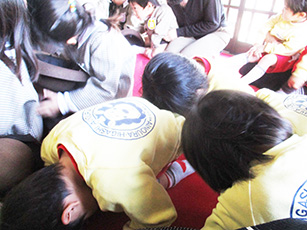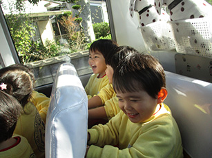 バスの中でも、お友だちと楽しそうにおしゃべりをしていました。