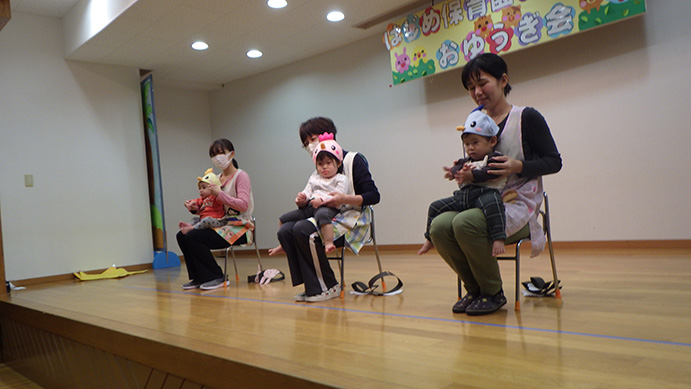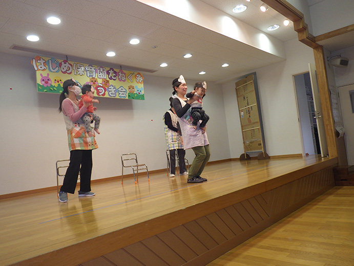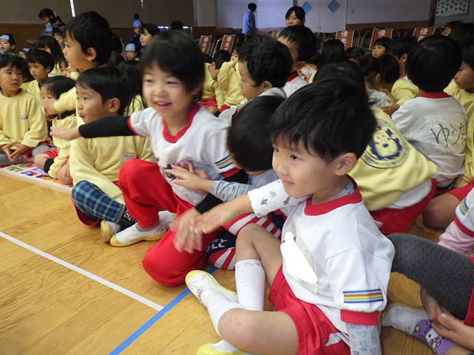幼稚園のお兄さん、お姉さんの前でちょっぴりドキドキ。