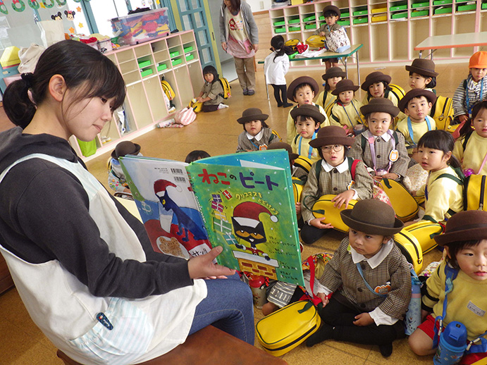 ことりぐみさんは、ピートの絵本を読んでもらっていました。