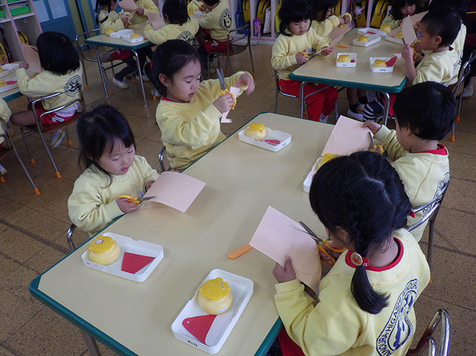 ことりぐみさんは○を切ることに挑戦。