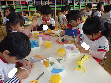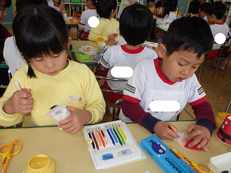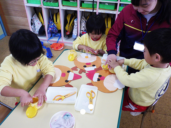 お部屋では各クラス、クリスマス製作。