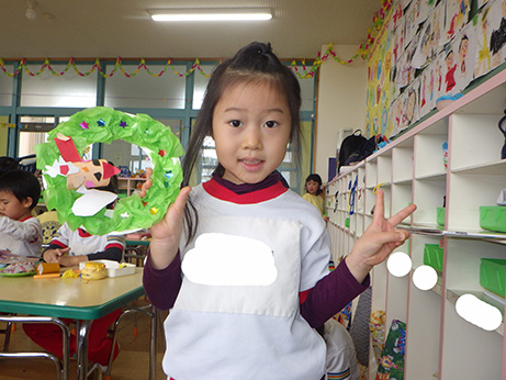 クリスマス会でおゆうぎ室に飾ります。