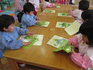 完成するとお友だちと見せ合い