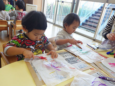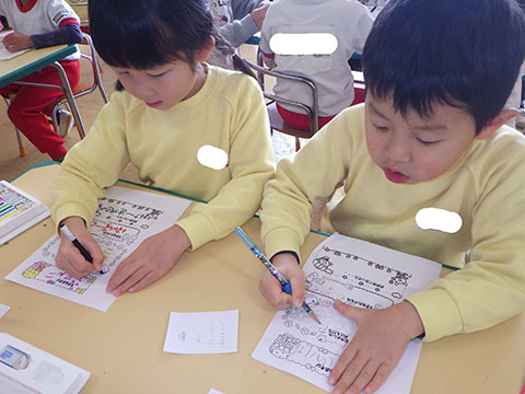 色をたくさん使って、カラフルに描くお友だちもいました。