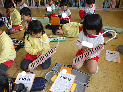 ことりぐみさんは鍵盤ハーモニカの練習を始めました。