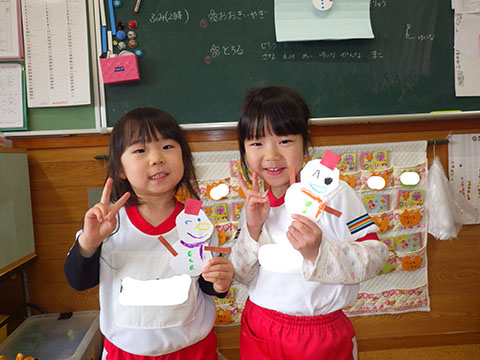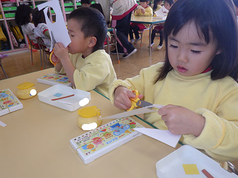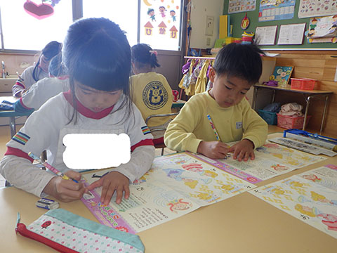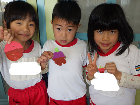 帰る準備が早く終わって、100点をもらったことりぐみさん。