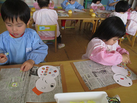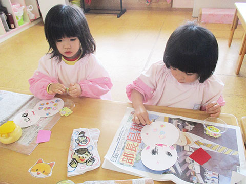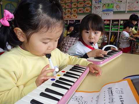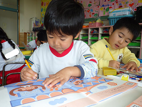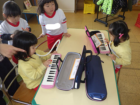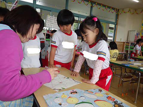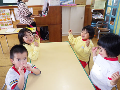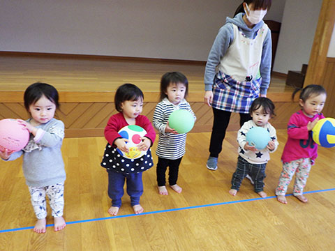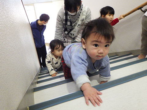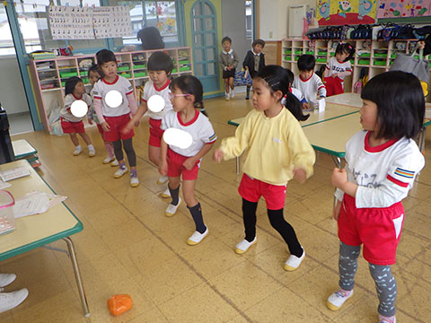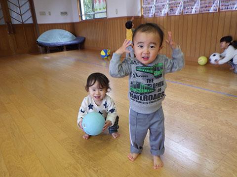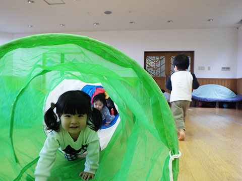 いっぽさん、にほさんは、おゆうぎ室へ行きました。