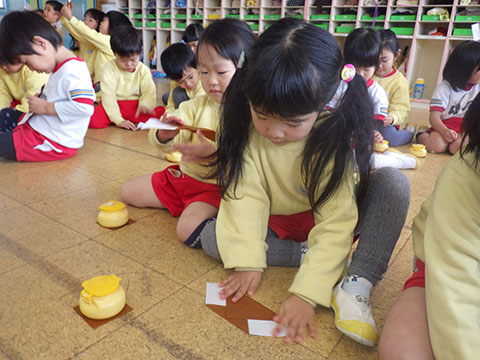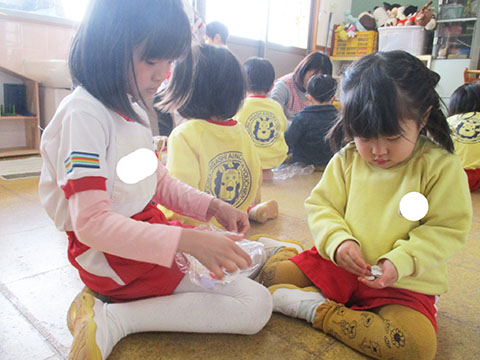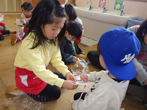 ひかりぐみのお姉さんに手伝ってもらいながら