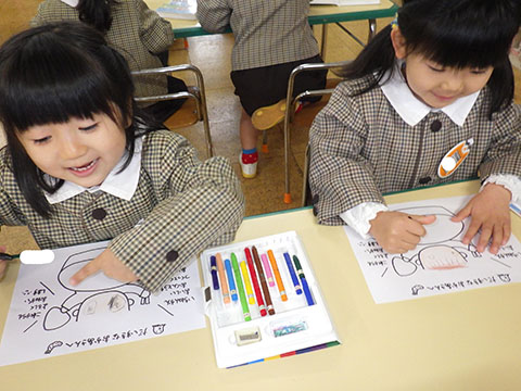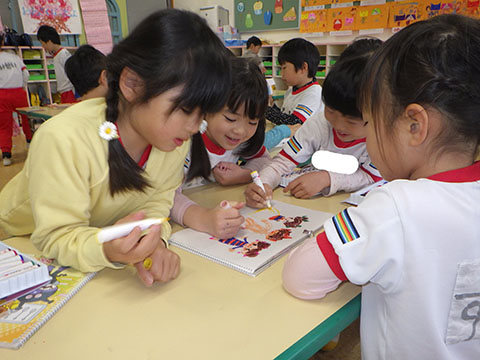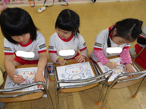 楽しそうにお絵かきをしていたひかりぐみさん。