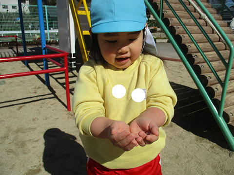 ダンゴムシを見つけて、優しく触っていましたよ。