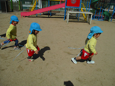 しっぽ取りゲームも捕まらないよう、最後まで逃げていましたよ。