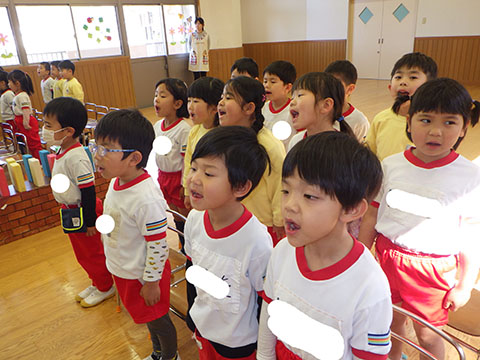 ことりぐみさんも昨日より大きな声で園歌を歌っていました。