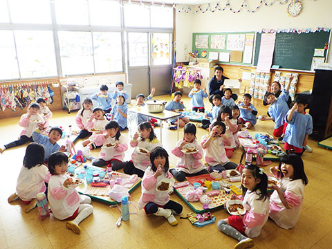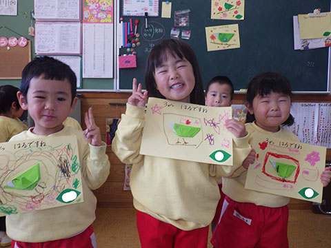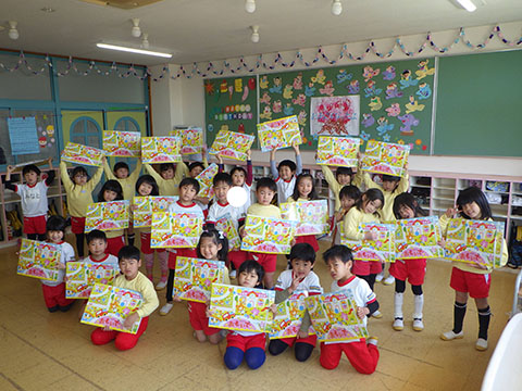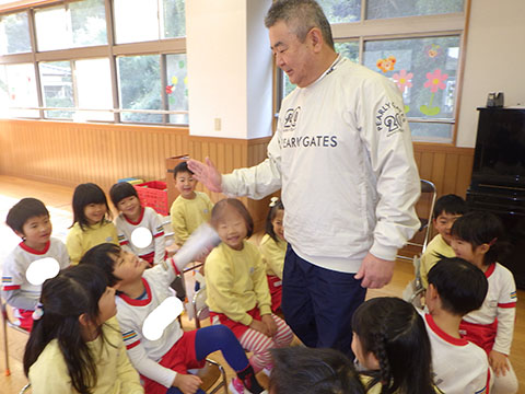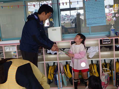 卒園式を前に、R先生から卒園DVDを受け取ったひかりぐみさん。