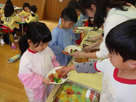幼稚園のお兄さん、お姉さんたちがお客さんです。