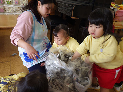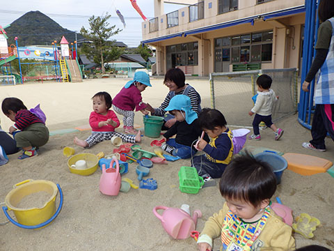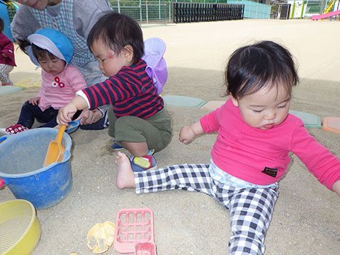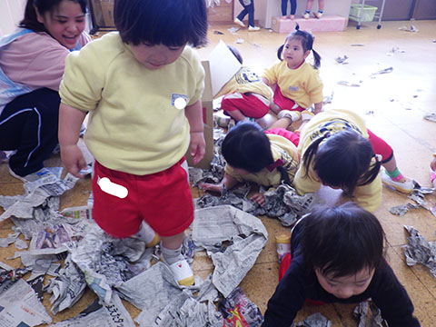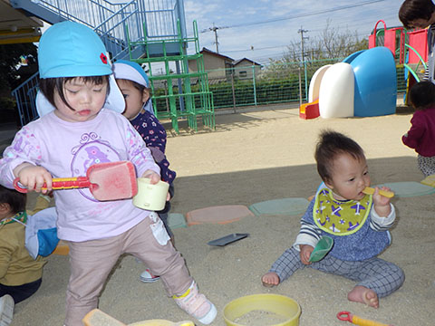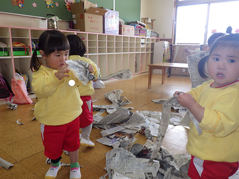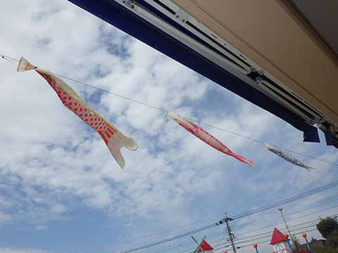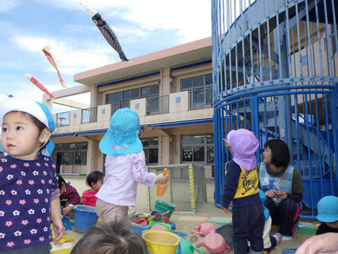 こんにちは。はじめ保育園です。 日に日に泣き声が聞こえなくなっていますよ。 新入園児さんも毎日がんばっています。 さて、今日のはじめちゃんは・・・  園庭にこいのぼりが元気に泳ぎ始めました。 はじめちゃんたち、大興奮!!  さんぽさんは、テラスからこいのぼりを見上げて 「お〜い!!」 と手を振っていました。 その後はお部屋で新聞あそび。  ビリビリ破くのもとっても上手   一生懸命集めて投げると、みんな大喜び   お片付けもバッチリでした。 いっぽさん、にほさんは 新しいお友だちが入園して、初めての外あそび。  こちらもこいのぼりを見つけて大喜び。  砂の感触を楽しみました。  スコップで上手に砂を入れるお友だちも。   魚の照り焼き ほうれん草のごま和え ごはん 佐世保汁 デザート 今日もおいしくいただきました。 新入園児さんは疲れが出てくる頃です。 週末はゆっくり休んでくださいね。 月曜日、また元気に会いましょう。 それでは楽しい週末を・・・。