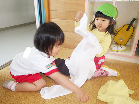 ことりぐみさんの着替えをお手伝いしてくれていた