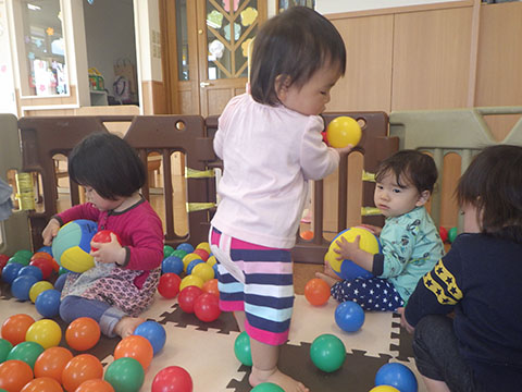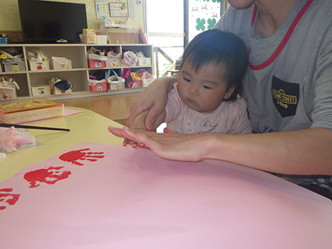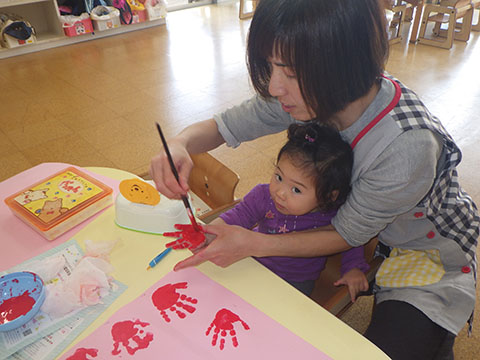 今日はボールあそびと一人ずつ手形をとりました。