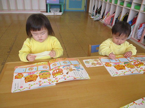 絵本の時間は、ことりぐみさんも静かにみていましたよ。