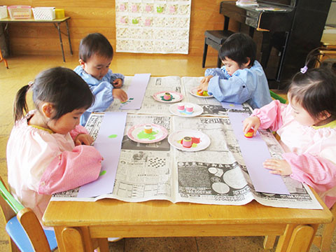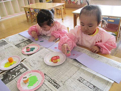 ペットボトルのふたでペタペタスタンプ。