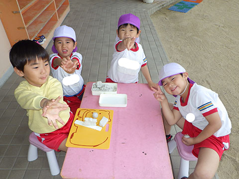テラスで粘土あそび。