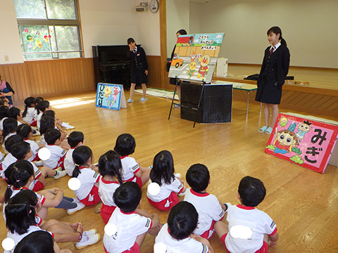 交通指導員のお姉さんたちが来てくださいました。