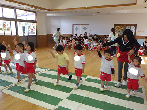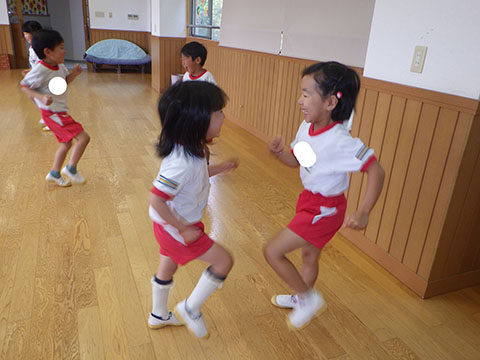 笑顔いっぱいで元気に体を動かしました。