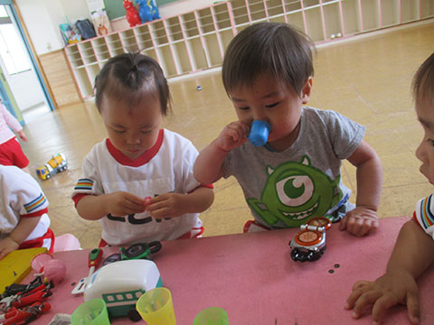 ひかりぐみさんがことりぐみさんと手をつないでくれましたよ。