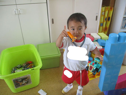 お弁当を早く食べ終えたひかりぐみのHくん。