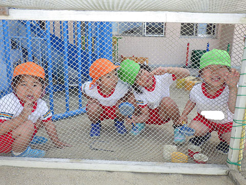 砂遊びも、力を合わせて穴を掘ったり、