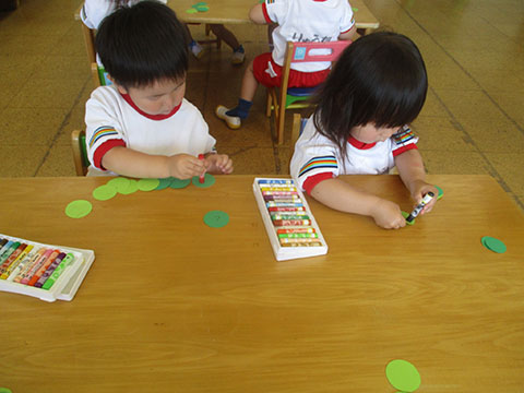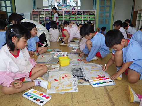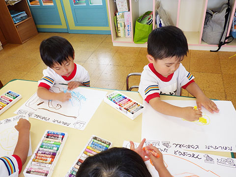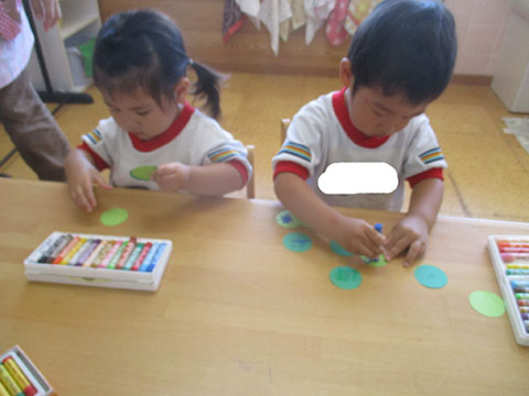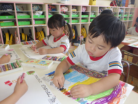 たくさんの色を使い、集中して最後まで塗っていました。
