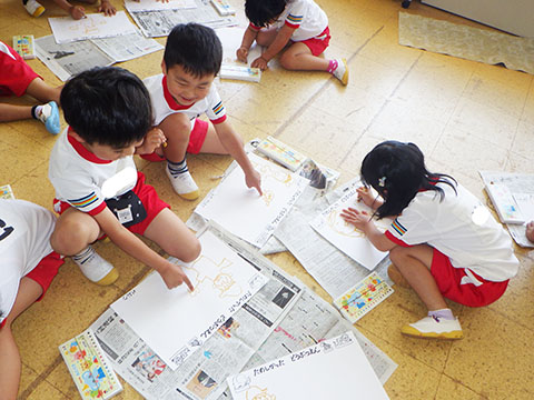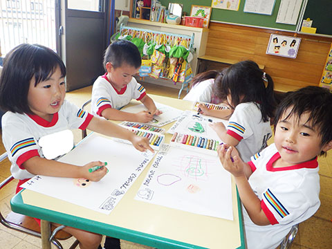 全クラス昨日の園外保育の経験画を描きました。