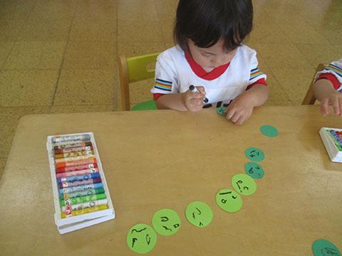 Kちゃんは上手に顔を描き、1列に並べていましたよ。