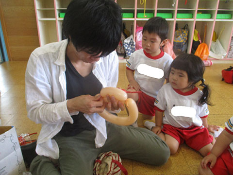 風船で形を作る姿に、興味津々。