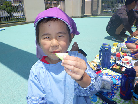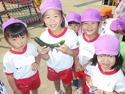 収穫したキュウリはひかりぐみさんが、少しずついただきました。