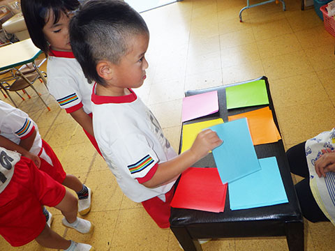 好きな色の折り紙を1枚選んで・・・