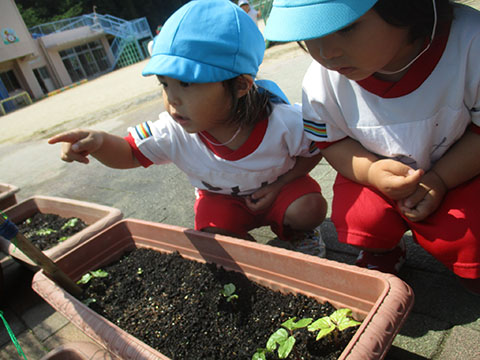 この前まいたあさがおも芽を出し